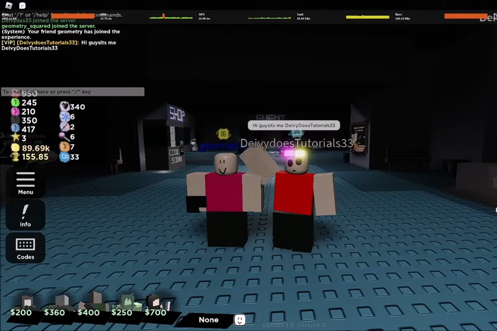 Starting from this video, Deivy starts recording his intro in a lobby and sometimes commenting in Roblox chat with us. Deivy and Geometry meet us and this time Geo is fully quiet and doesn't even write in the chat, and it seems that Geo is doing it reluctantly, as Deivy constantly makes him wave or enter the portal, pointing out the other's distraction.